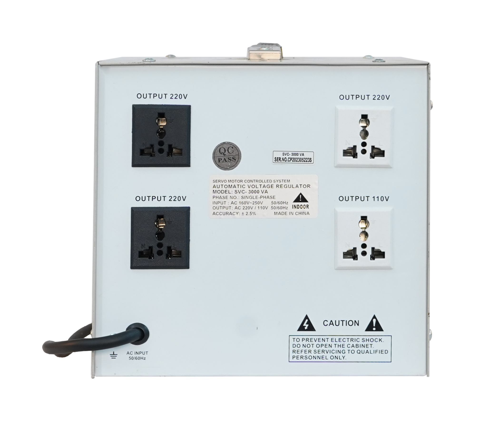 - Regulación Precisa: Utiliza tecnología de servomotor para ajustar con precisión el voltaje de salida, asegurando un suministro constante y estable.