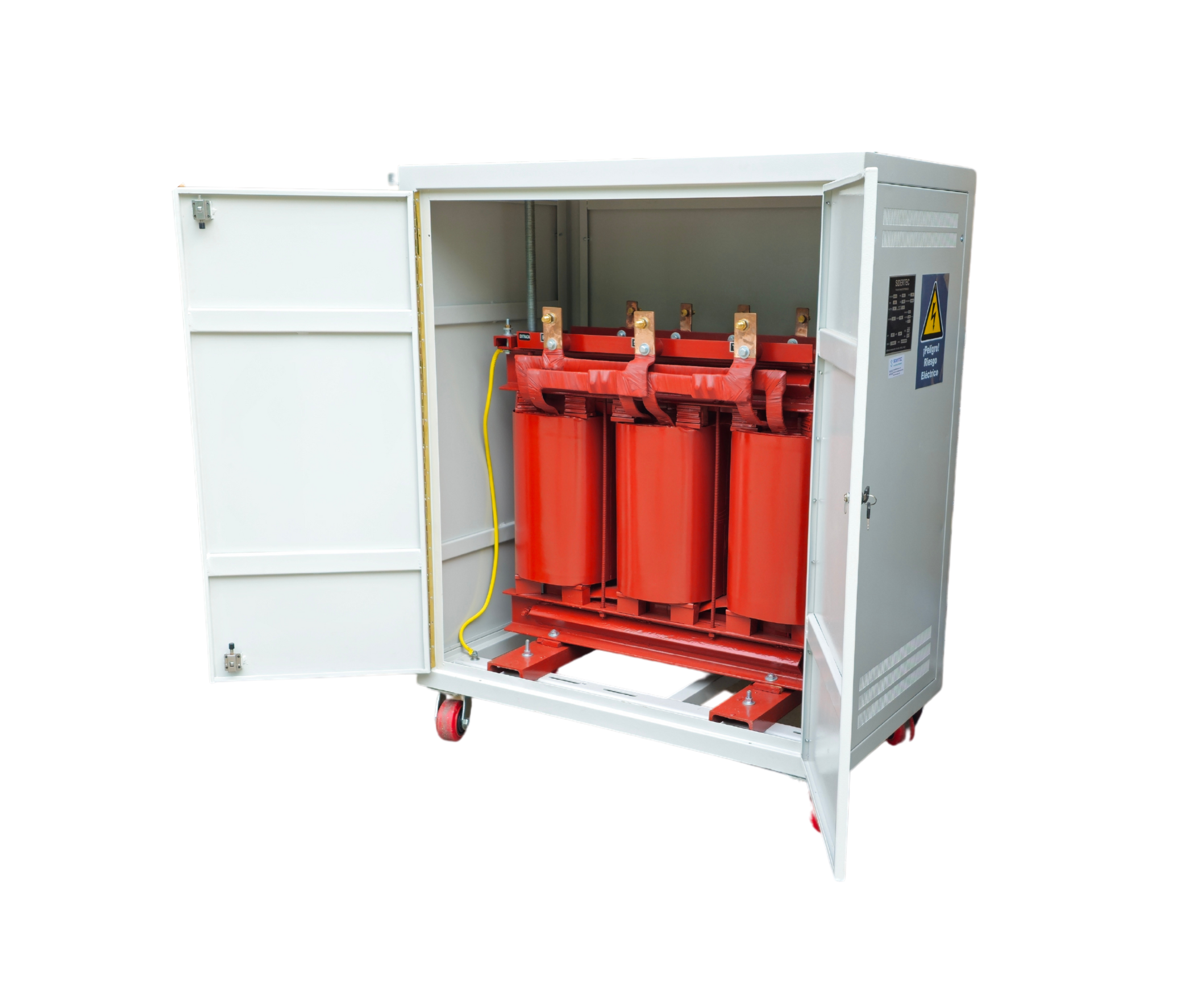 Transformador en SECO, núcleo de hierro laminado en frio, temperatura ambiente 40 °C, fabricado de acuerdo a la norma